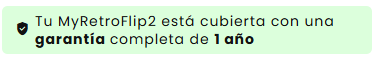 Tu MyRetroFlip 2 incluye una garantía completa de 1 año. Nuestro equipo está disponible para ayudarte y asegurarse de que tengas la mejor experiencia posible.