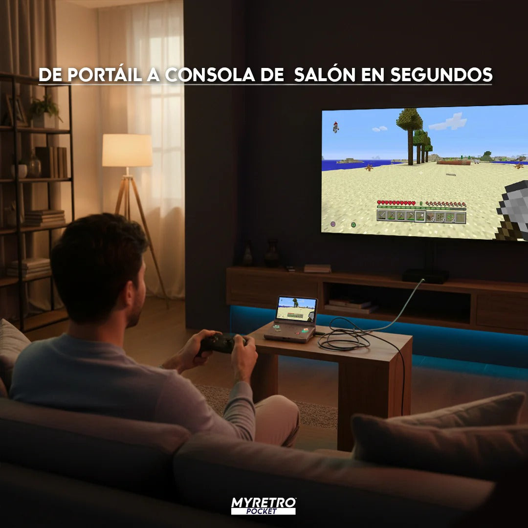 Conecta tu MyRetroFlip 2 a la televisión y disfruta de tus juegos en la gran pantalla con total comodidad.